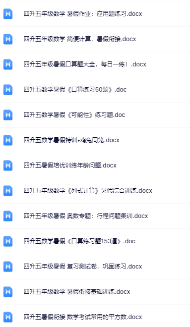 | 四升五暑假数学资料大全集【高清无水印+可编辑+持续更新】 | |