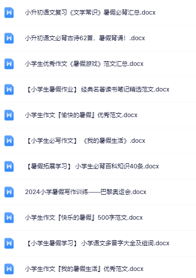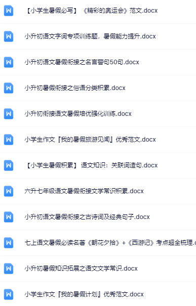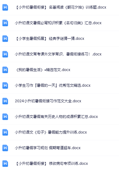 | 小升初暑假语文资料大全集【高清无水印+可编辑+持续更新】 | |