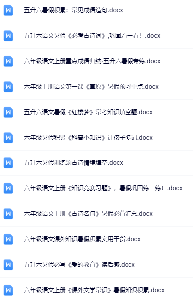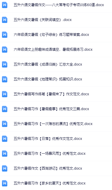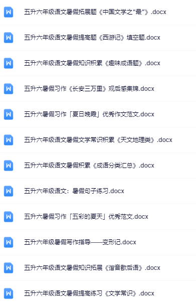 | 五升六暑假语文资料大全集【高清无水印+可编辑+持续更新】——学霸暑期提分神器! | |