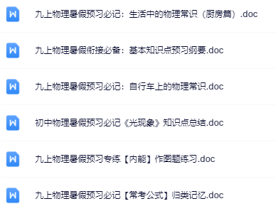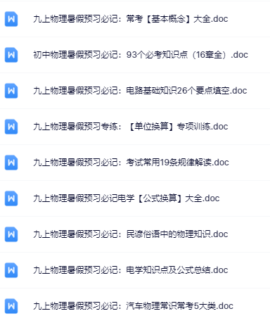 | 八升九暑假物理资料大全集【高清无水印+可编辑+持续更新】——初中物理逆袭高中强有力助手 | |