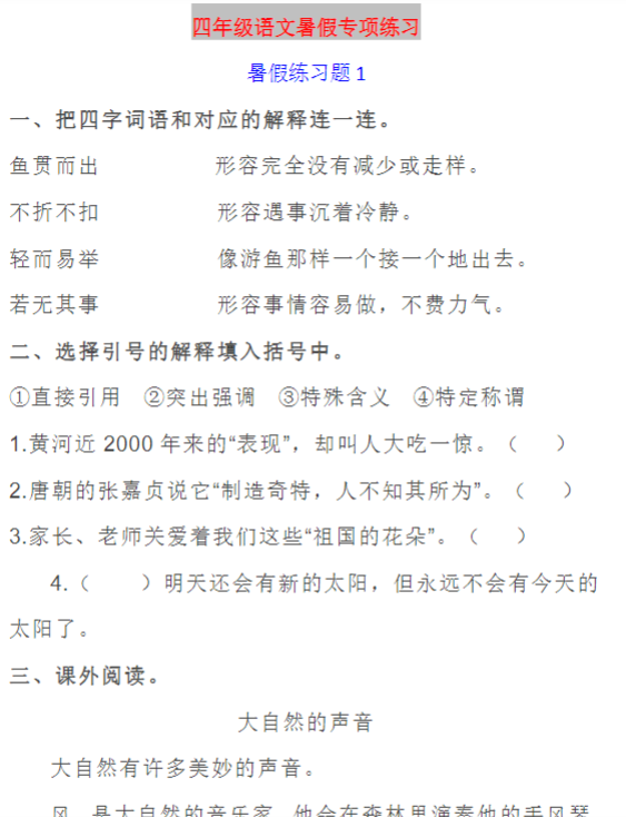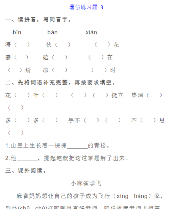 | 【精品】《暑假作业》1-5年级语文(全年级全科目高清无水印版) | |