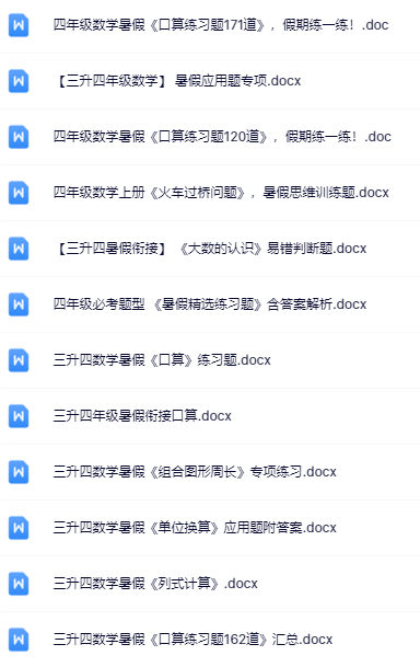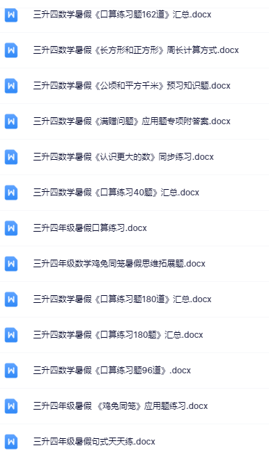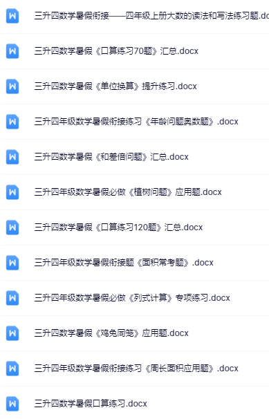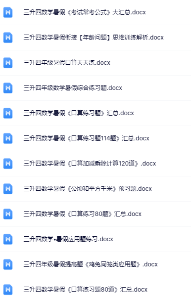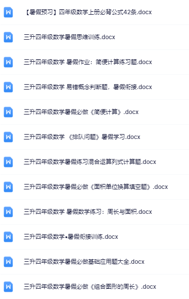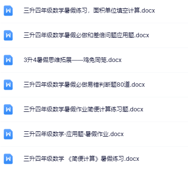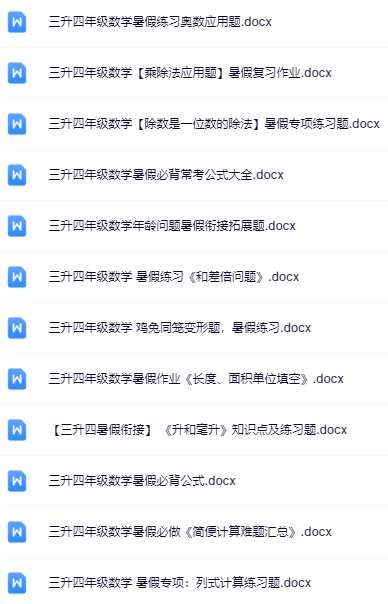 | 三升四暑假数学资料大全集【高清无水印+可编辑+持续更新】(可一键下载打印) | |