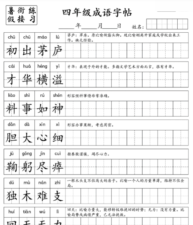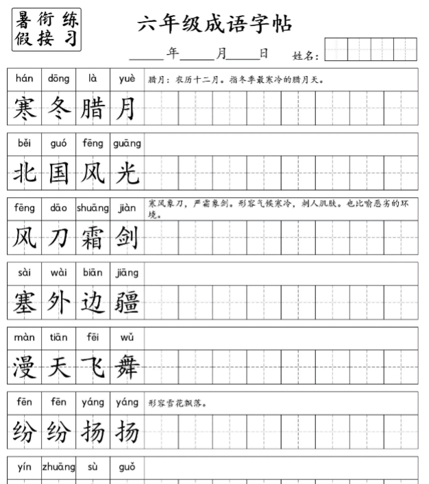| 【暑假衔接专练】1-6年级成语字帖 — 小学生暑期提分刚需训练纸 | |