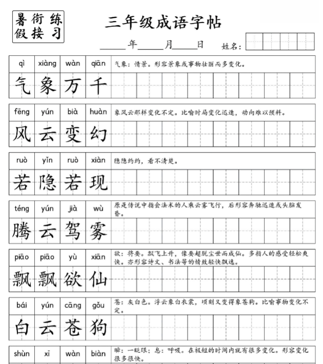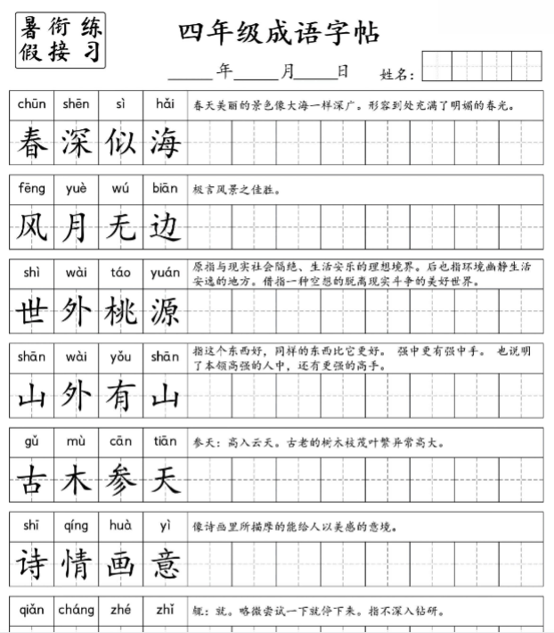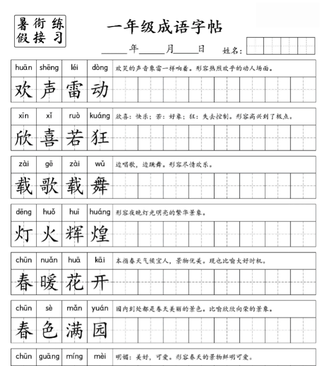 | 🚀【立即一键下载】1-6年级成语暑假衔接字帖!让孩子练字、积累两不误,领先整个班级! | |