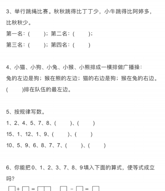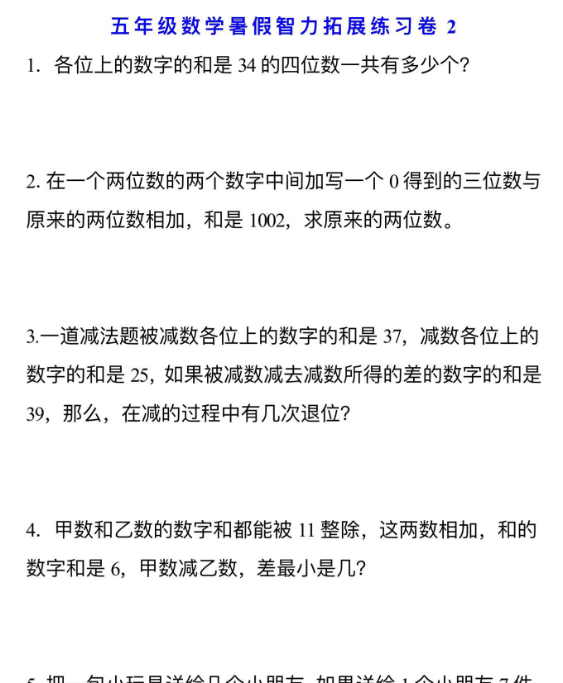 | 【精品】《数学暑假智力拓展练习题》1-5年级(可打印版) | |