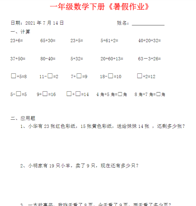 | 【精品】1-5年级数学《暑假作业》完整解析版(可一键下载打印) | |