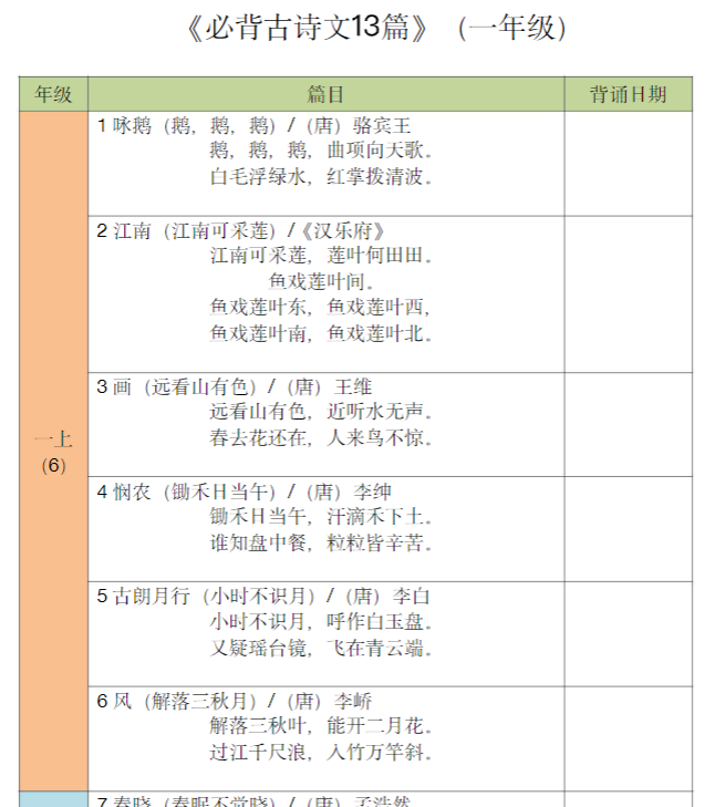 | ⏰限时免费下载《暑假古诗文背诵记录表》1-6年级完整版!一键保存,让孩子暑期古诗背得又快又牢! | |