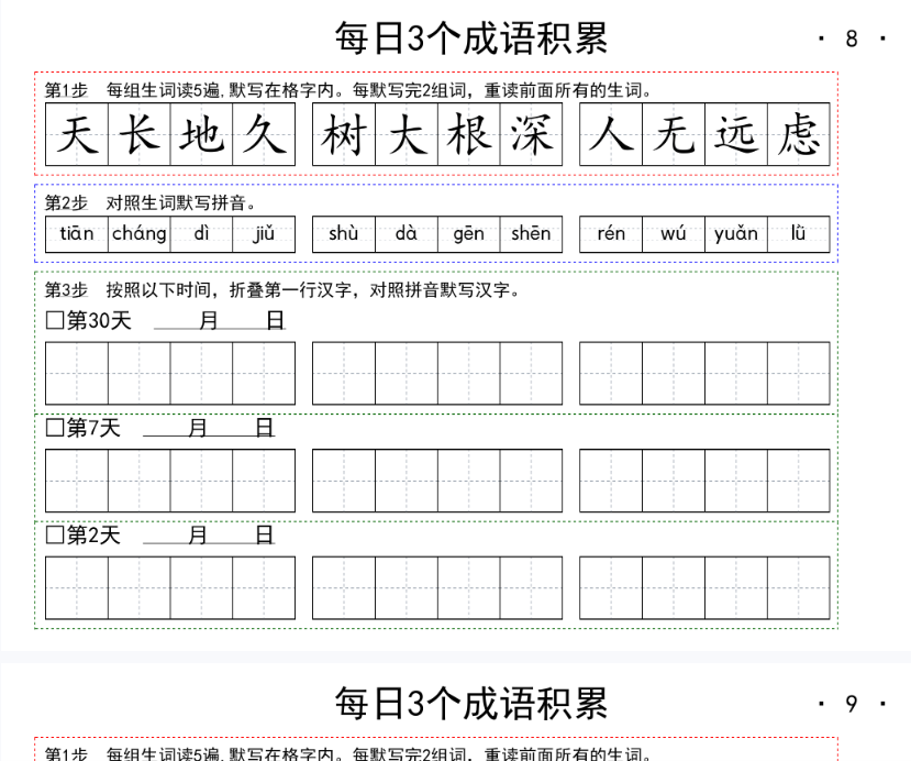 | 核心优势 | 🌟《图解记忆卡》告别死记硬背! 🌟 每日仅需10分钟,坚持21天成语量翻倍 🌟 配套音频朗读,提升听写+口语能力 🌟 彩色版+黑白版双版本任选,方便打印 🌟 幼小衔接、小升初通用,暑期逆袭必备 |
