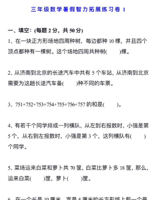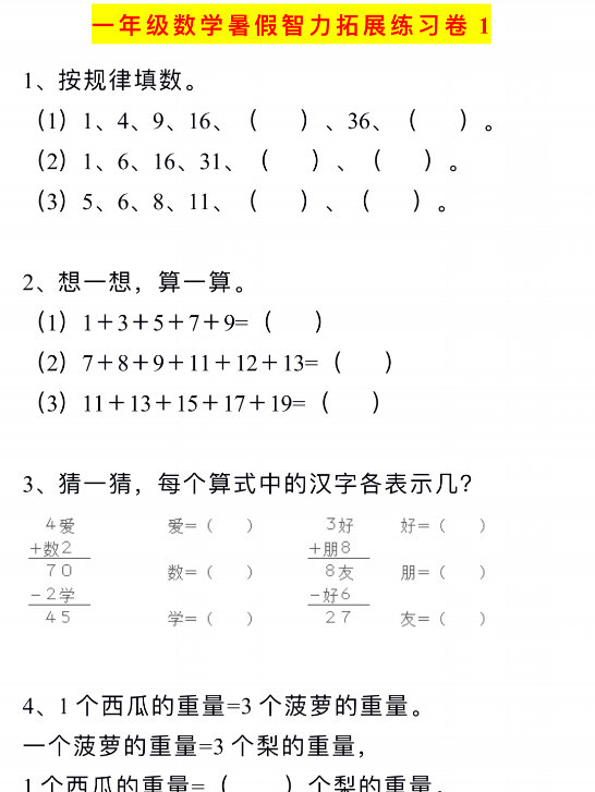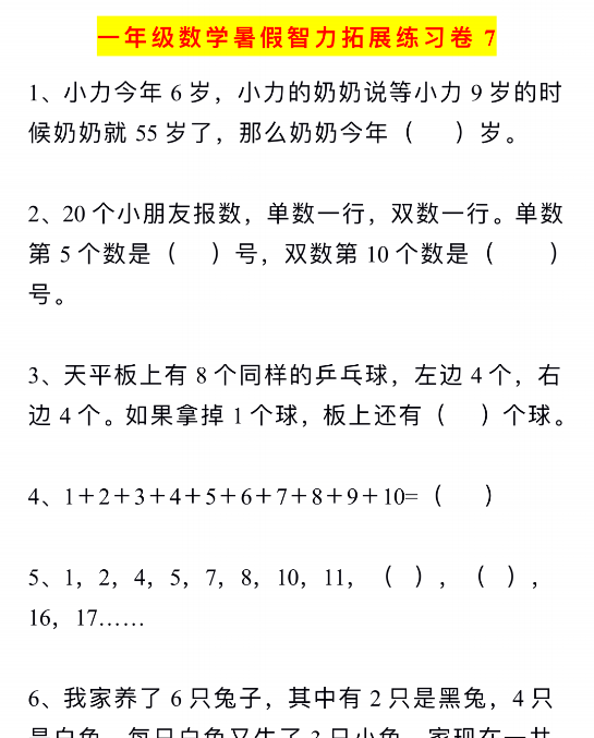 | 【精品】《暑假智力拓展练习卷》1-5年级数学(全版本可下载) | |