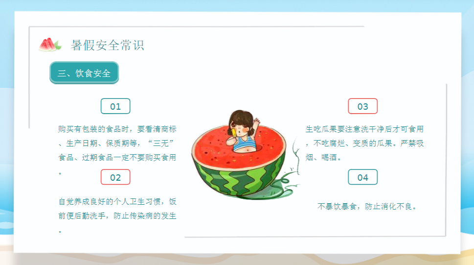 | 使用场景 | 📚 学校暑假安全教育班会课专用 👨👩👧 家庭暑期安全提醒教学工具 🎓 社区/培训机构安全宣传材料 📅 教师暑假前备课资源速查库 |