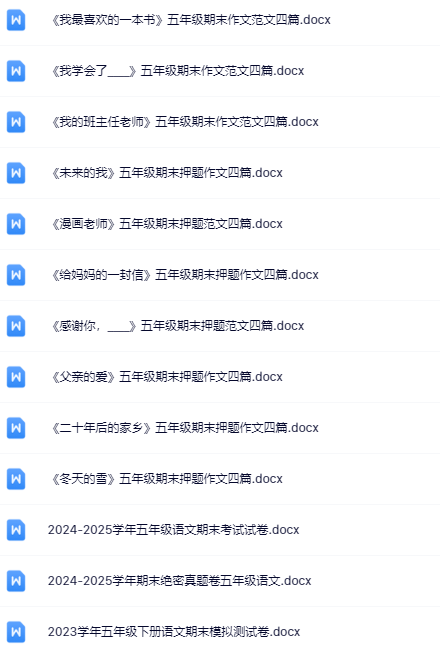 | 【限时免费领取】200份五年级语文期末试卷打包→一键下载+一键保存,高清可编辑,立即抢先进阶学习资源! | |
