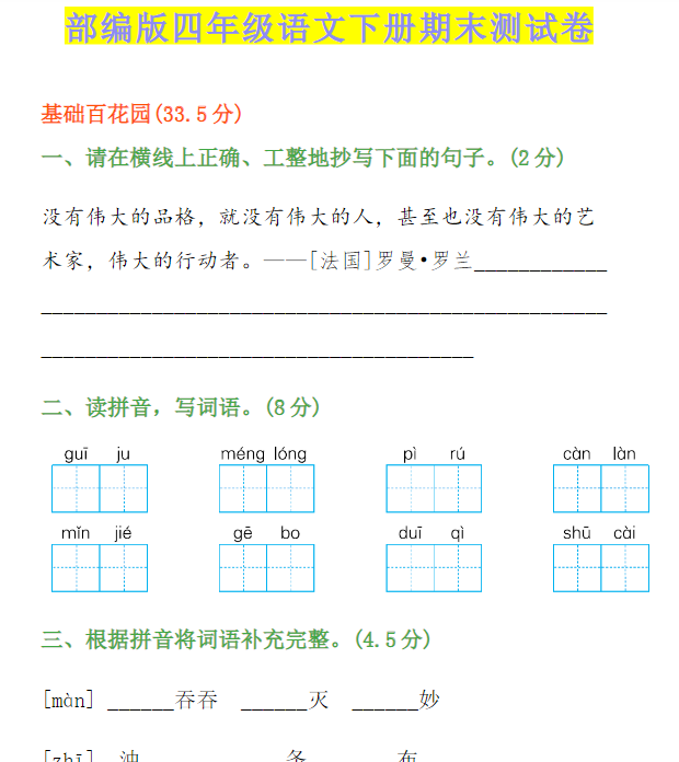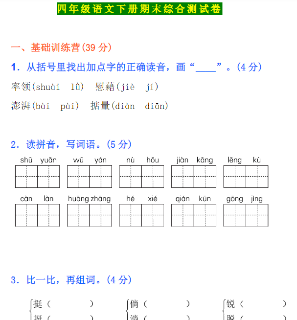 | 199份!最新四年级语文下册期末精品试卷资料打包下载【高清无水印+可编辑】 | |