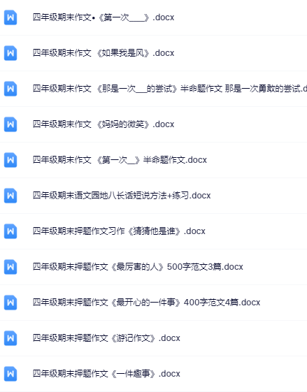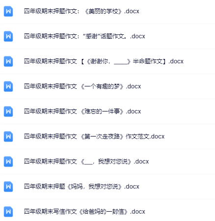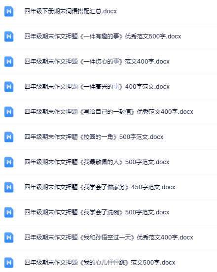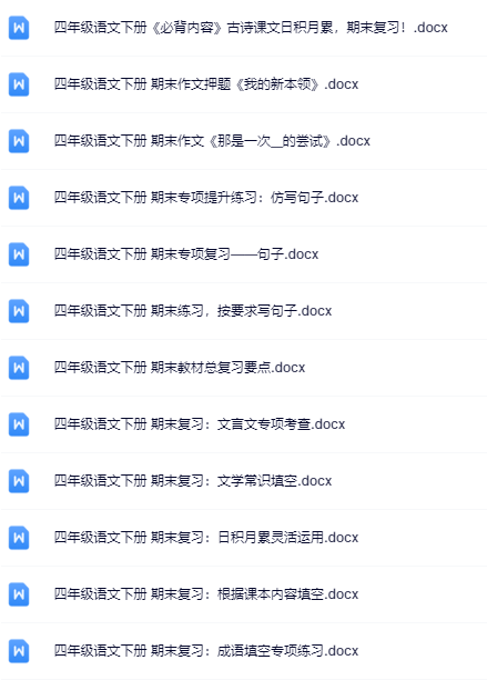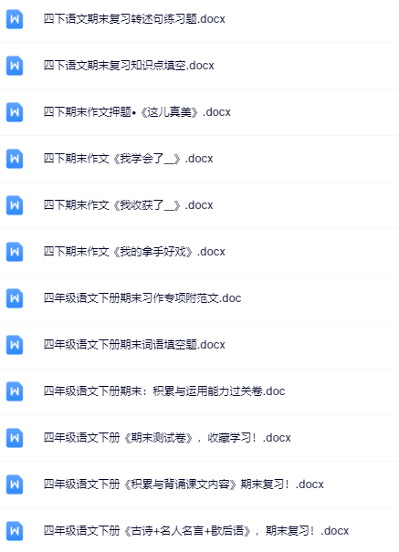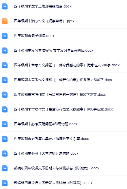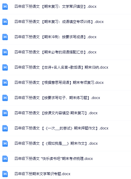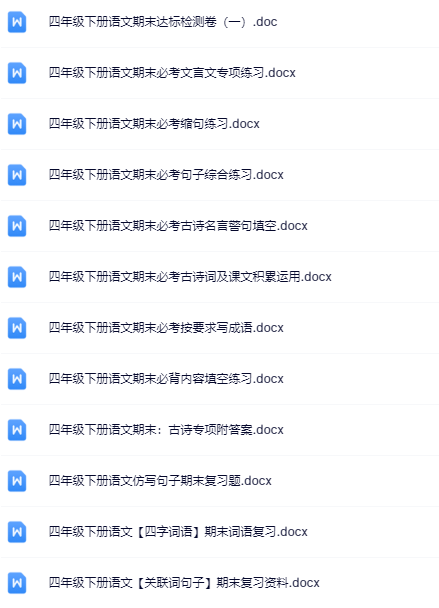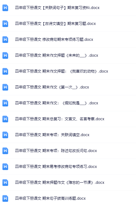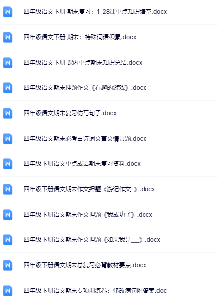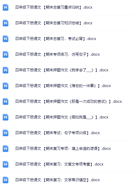 | 一键快速保存,199份四年级语文下册期末精品试卷打包下载!高清无水印+可编辑文档,备考冲刺就用它,错过再无!立即点击获取全套提分资料! | |