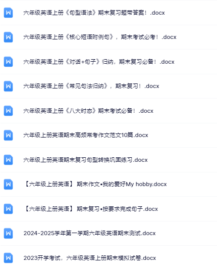 | 一键快速保存!25份最新六年级上册英语期末精品试卷打包下载【高清无水印+可编辑】,考前冲刺必备利器,限时免费领取,助你轻松冲刺高分! | |