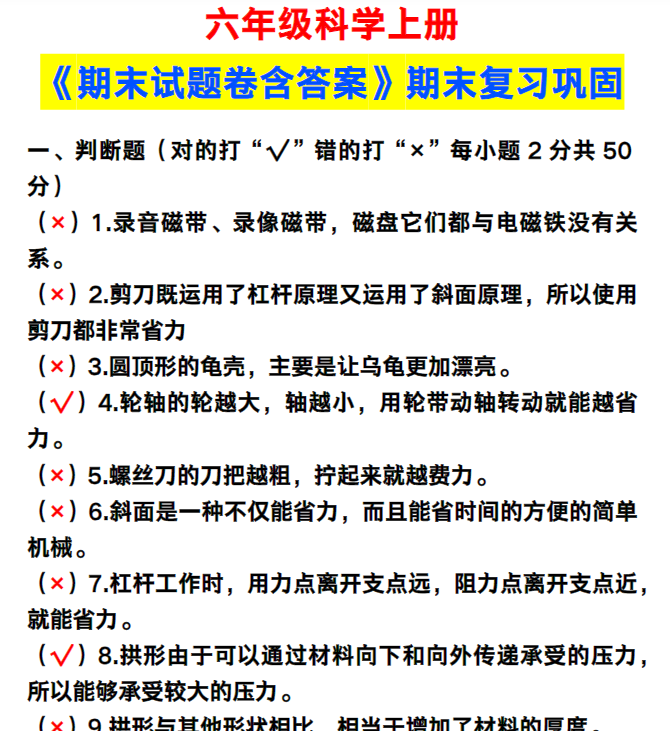 | 7份!最新六年级上册科学期末精品试卷资料打包下载【高清无水印+可编辑】 | |