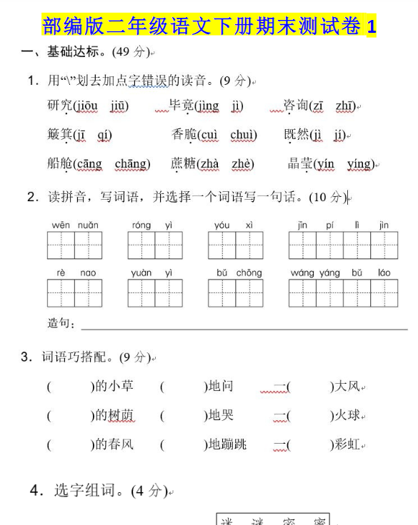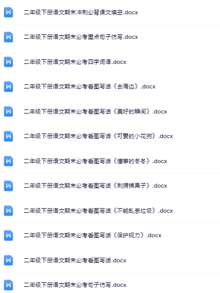 | 【立即一键下载】27份高清可编辑二年级语文期末密卷,练透考点,高分无忧!错过再无! | |