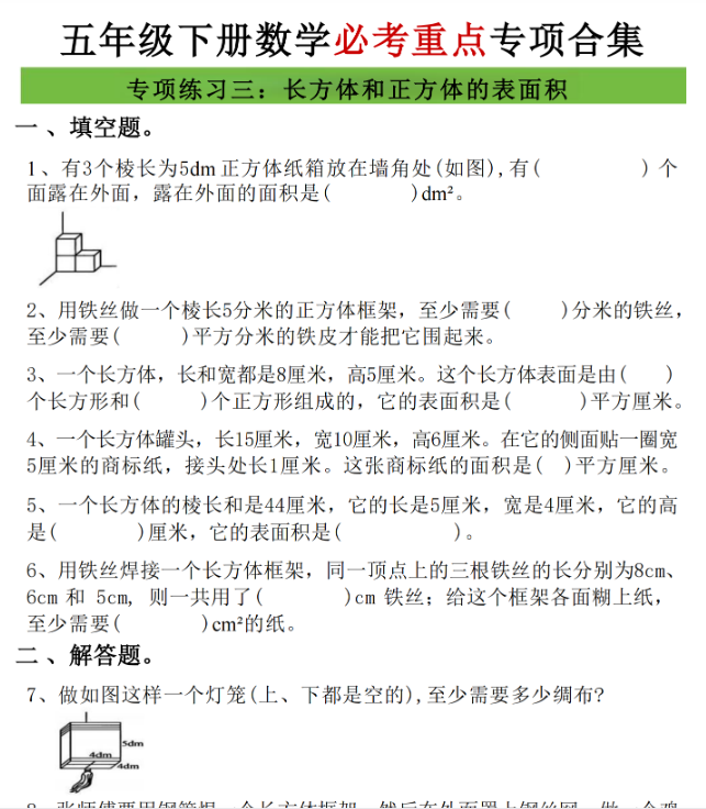 | 17页!五年级(下)数学八大专项期末重点资料合集(含答案) | |