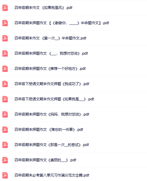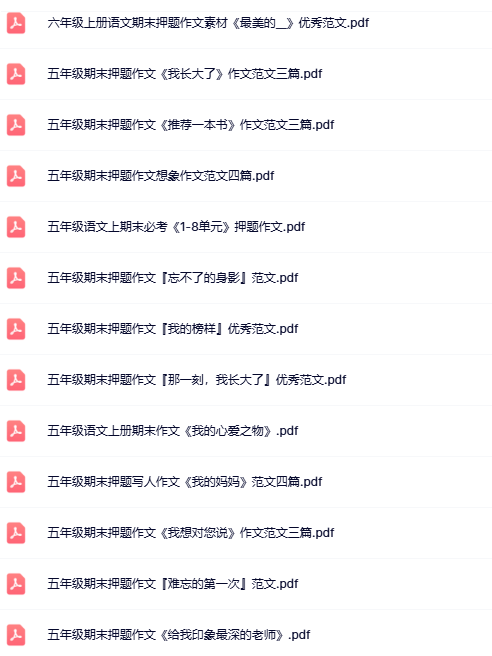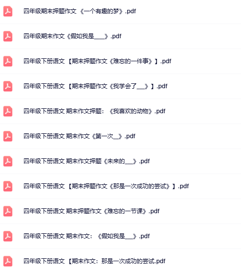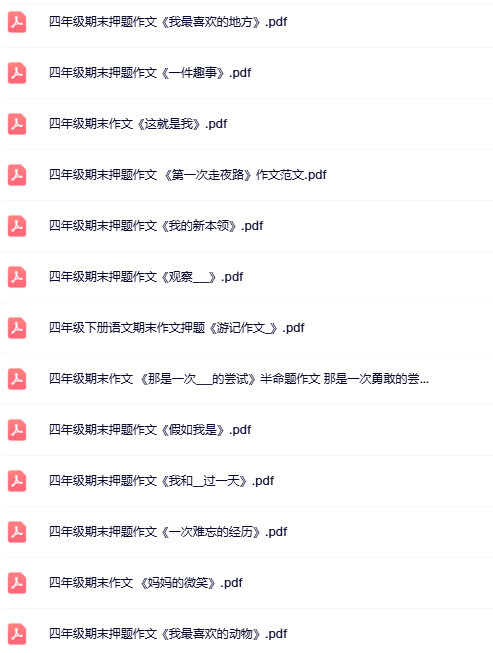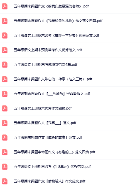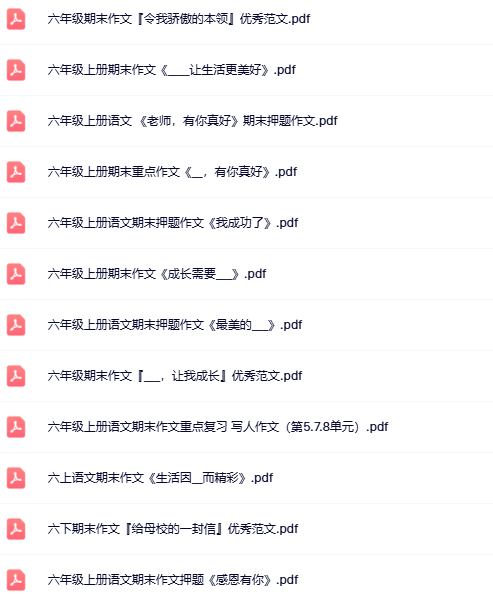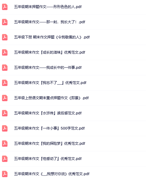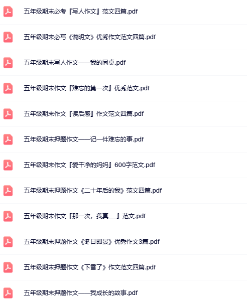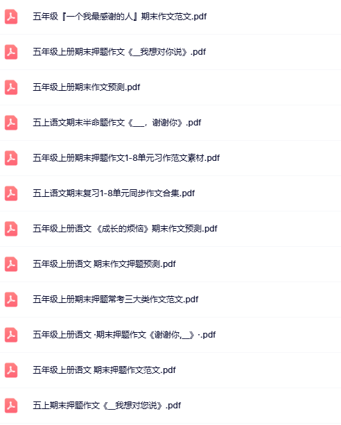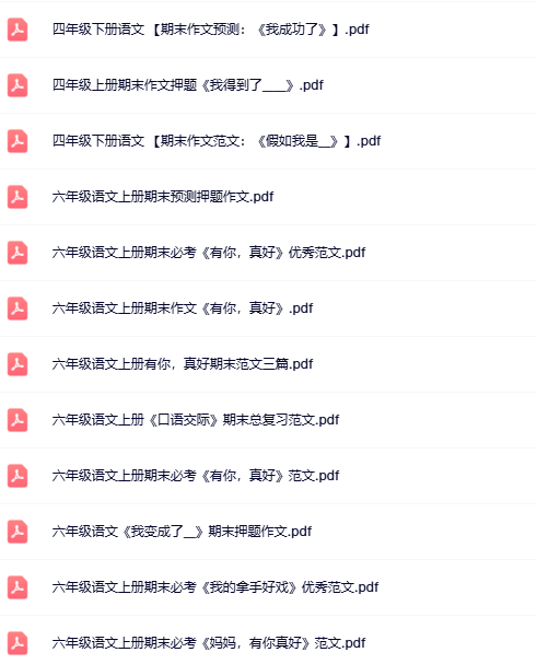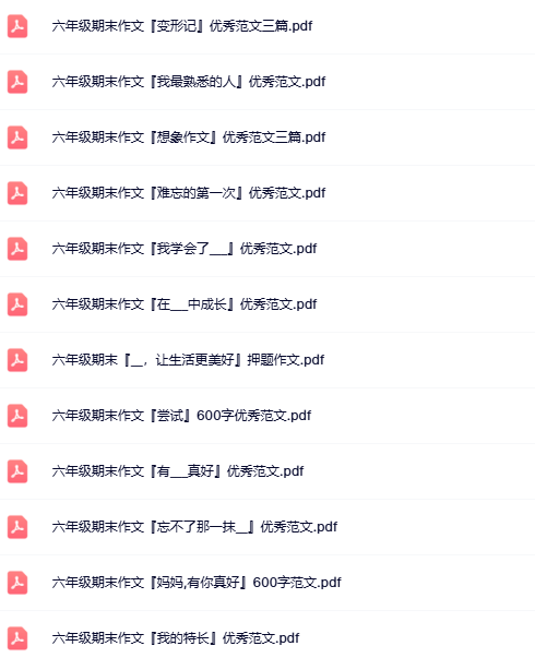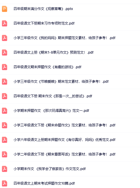 | 资源亮点 | ✅397份独家精编期末作文范文,涵盖常考主题与热点素材! ✅高清无水印完整版PDF,可一键保存为永久学习资料! ✅持续更新中,抢先锁定新增优质内容,永不过时! ✅按年级、主题、文体分类清晰,查找写作灵感零延迟! |