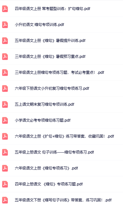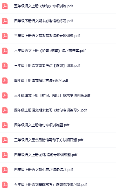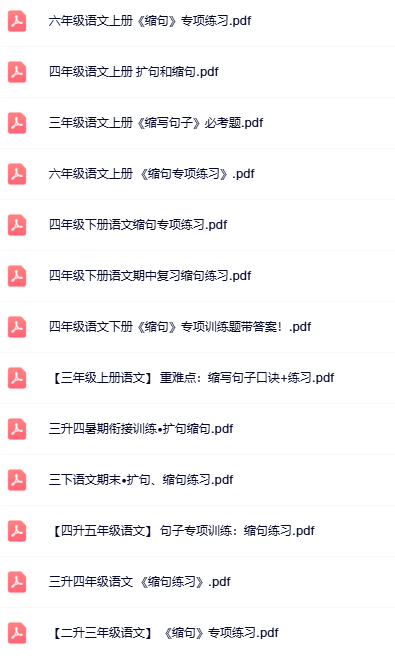 | 资源亮点 | ✅ 65份系统缩句清单,全网独家持续更新! ✅ 高清PDF可一键下载打印,文本清晰不模糊! ✅ 按题型分类归纳,涵盖单句、复句、病句修改等全类型! ✅ 附带答案解析与答题技巧,高效提分一步到位! |