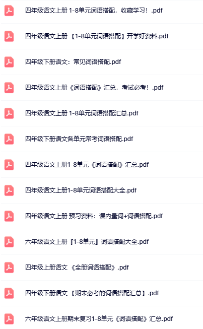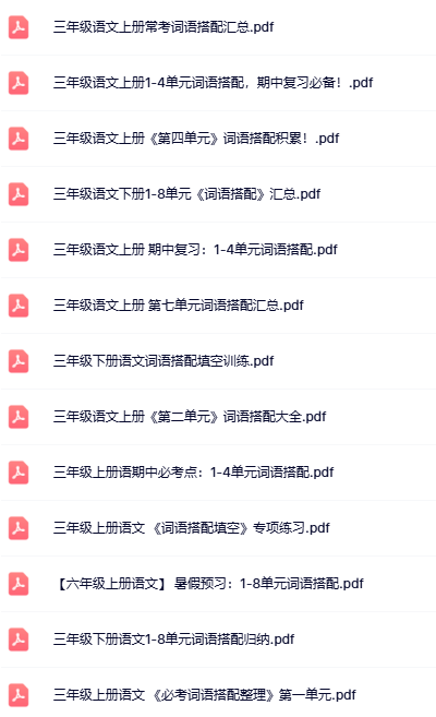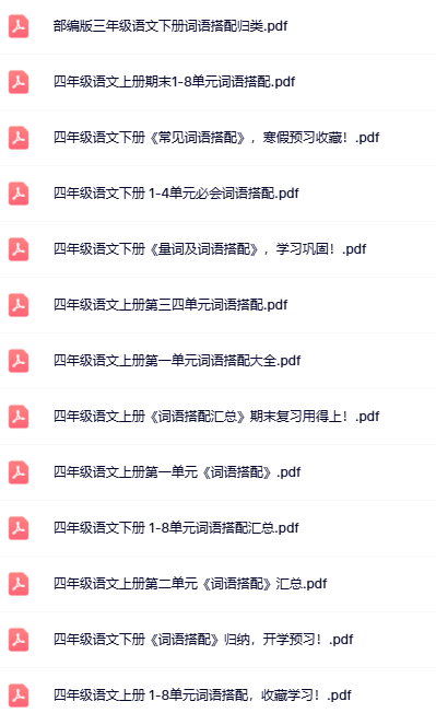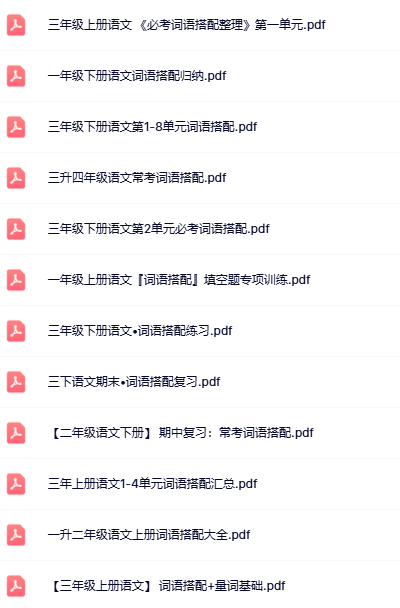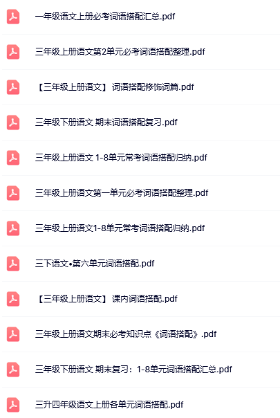 | 资源亮点 | ✅ 139份精心整理词语搭配清单,覆盖小学至高中全阶段! ✅ 高清完整PDF排版,清晰打印无忧查看! ✅ 持续更新不断加入新词新例,永久跟新特权! ✅ 一键保存/下载极速获取,随时随地备考复习! |