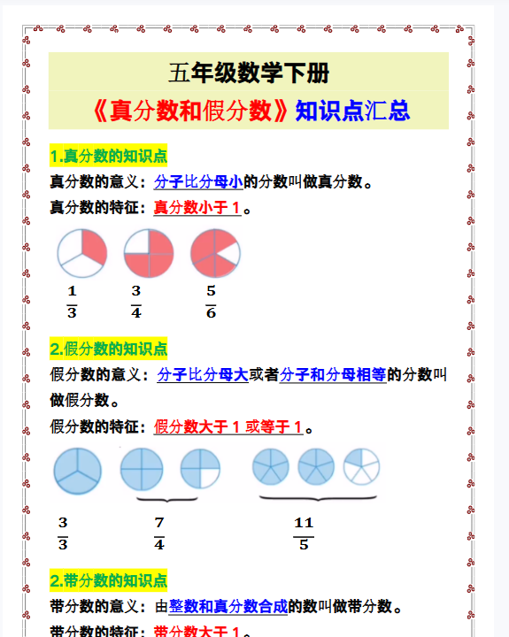 | 资源亮点 | ✅ 5套高清完整版《真假分数》专项训练题(持续更新) ✅ 涵盖最新考纲要点,精准分类:真分数、假分数、带分数互化技巧 ✅ 每份含详细解析与高清原图,可直接一键打印使用! ✅ 来自权威教育机构持续更新资源,题目持续补充中,最新最快获取方式在这里! |