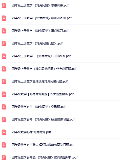 | 鸡兔同笼最新整理持续更新版(高清完整可打印)—158份精选资源 | |