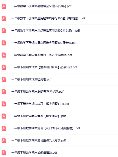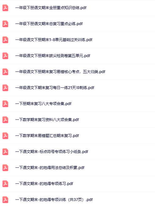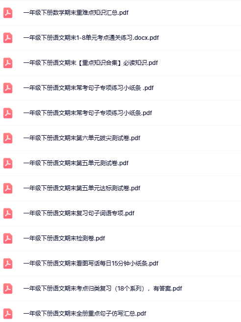 | 一键快速保存,最新版一年级下册期末复习资料63份全收录!高清无水印品质速览,立即下载让孩子冲刺满分! | |