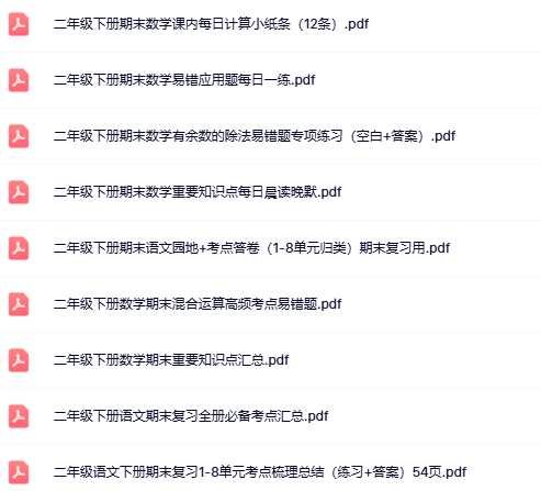 | 19份高清精品!二年级下册期末复习资料一键保存更新版,内部资源抢先占!错过再无,快为孩子收藏备考! | |
