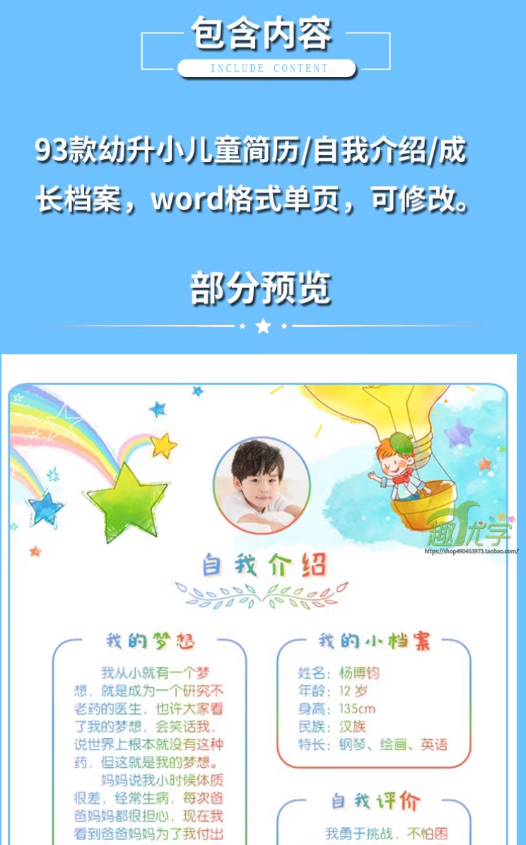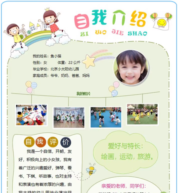 | 幼升小简历模板 & 卡通自我介绍 – 儿童成长档案一键生成 | |
