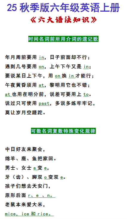 | 🚀 【立即一键下载】2025六年级英语上册《六大语法知识》PDF+高清版!领先孩子一步,语法不再怕!📥 限时免费领取,错过再等一年! | |