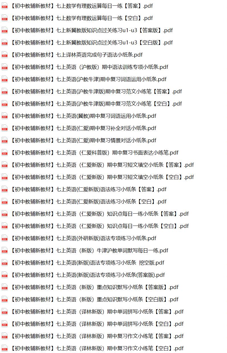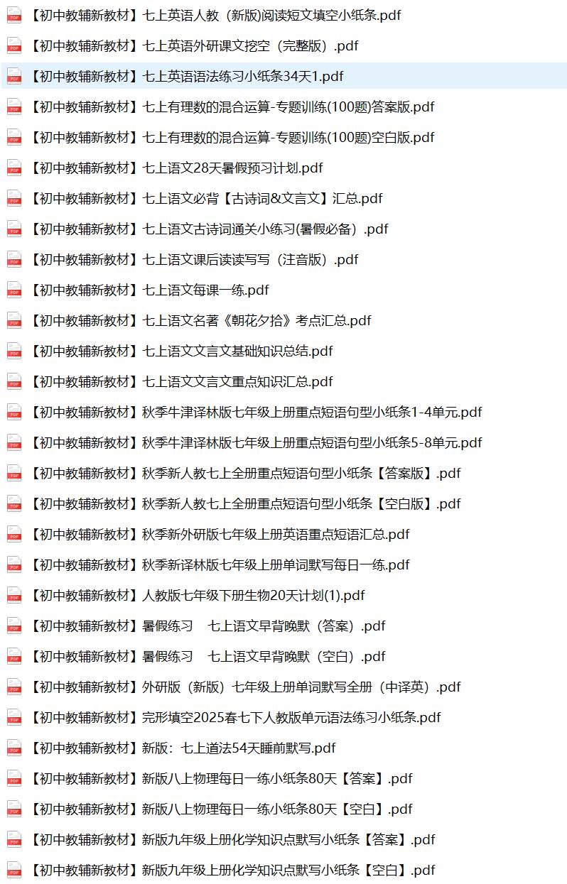 | 【全套】一键打包初中7-9年级各学科教辅资料【高清无水印可直接打印】 | |