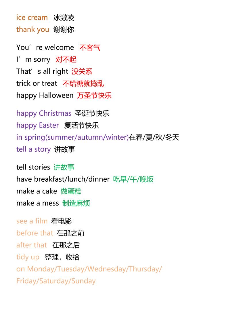 | 内容优势 | 动词短语:如go shopping/drive a car(附语境例句) 介词短语:如in the morning/on the playground(标红易混词) 句型短语:如What time is it?/How many…?(答题模板+自然的中文翻译) 智能标注:重点短语加粗,易错用法用⚠️提醒,巩固记忆更高效! |