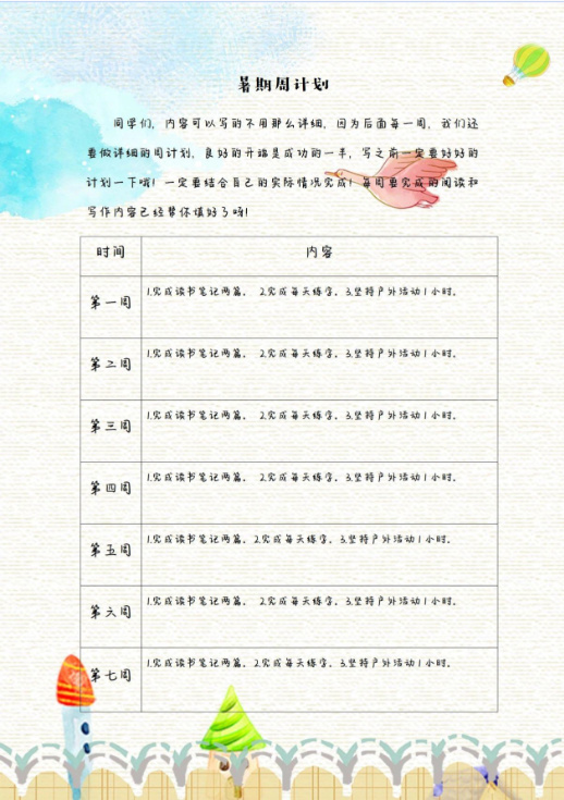 | 使用场景 | 📅 暑假每日任务安排 🖨️ 家长直接下载打印,班级群一键转发 📌 小学三四年级教师暑期布置创意作业 🧒 孩子独立完成或亲子协作,提升自主学习力 |