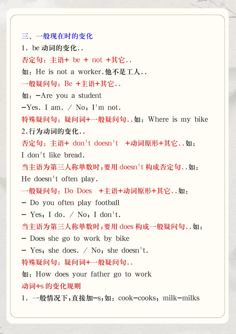 | 内容优势 | 🌟 名词分类:可数/不可数名词区分+复数规则变化(s/es/ies等) 🌟 动词时态:一般现在时/进行时要点解析+第三人称单数变化 🌟 疑问句:特殊疑问句/一般疑问句结构+答句技巧 🌟 感叹句:what/how引导感叹句形式对比 🌟 句型转换:肯定句/否定句/疑问句互改方法+技巧 |