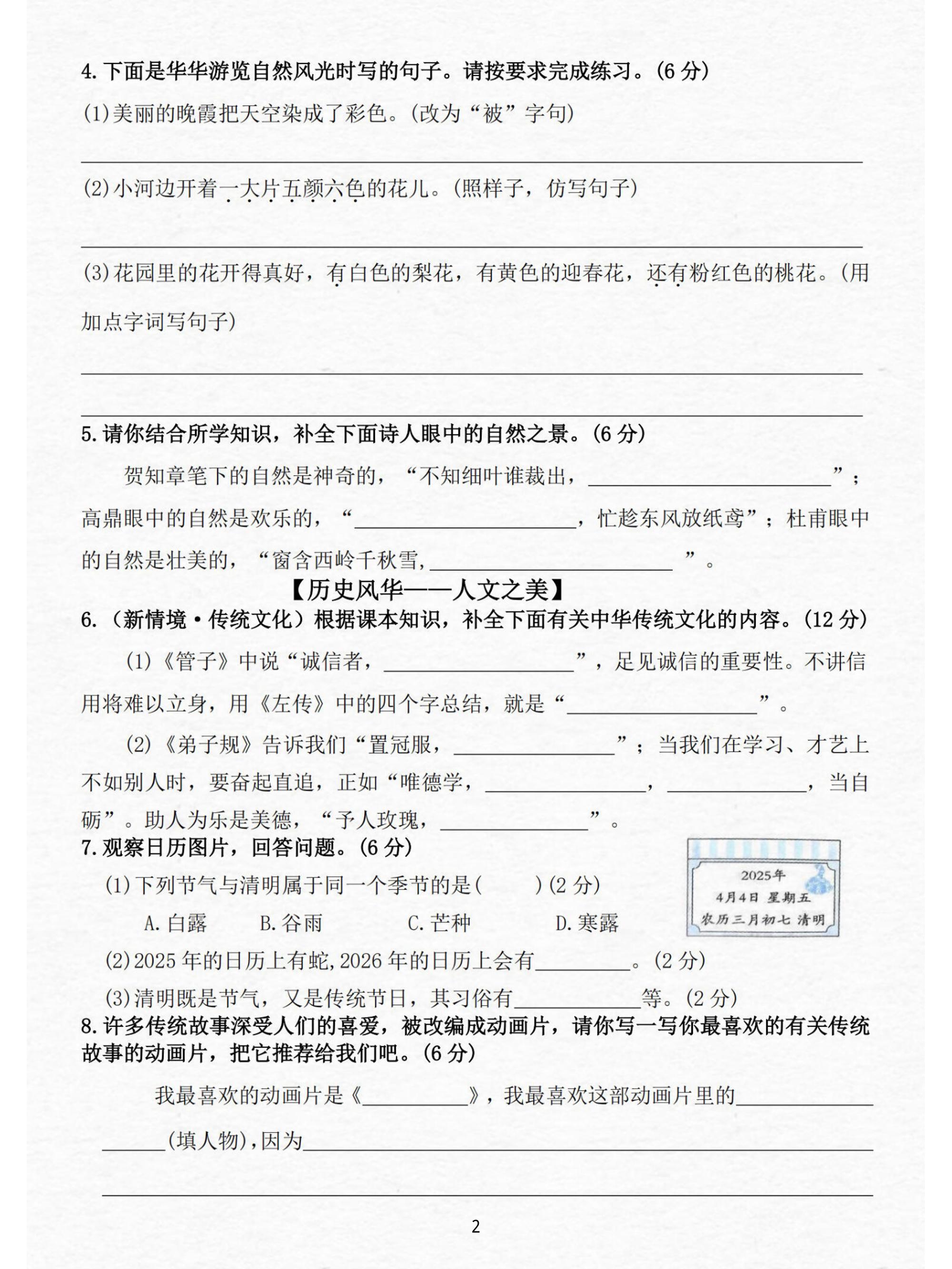 | 用途 | 这套期末情景测试卷聚焦二年级下册语文核心知识与能力,通过3套独立卷(每套含基础积累、阅读理解、表达应用等模块),既是对学期学习效果的即时检测,也能帮孩子定位拼音、识字、阅读、写作等方面的薄弱环节,供学生针对性复习;对教师而言,可辅助分析班级整体学情,调整后续教学重点;家长也能借此直观了解孩子语文学习水平,避免盲目刷题,更高效地提供辅导支持。 |
