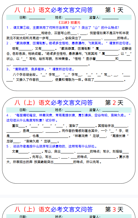 | 初中八上语文精品小纸条(高清无水印版) | 考前突击神器 | |