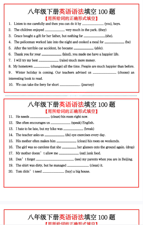| 【高清无水印极速下载】24版初中八下英语必背小纸条!点击一键保存,期末冲刺逆袭必备! | |
