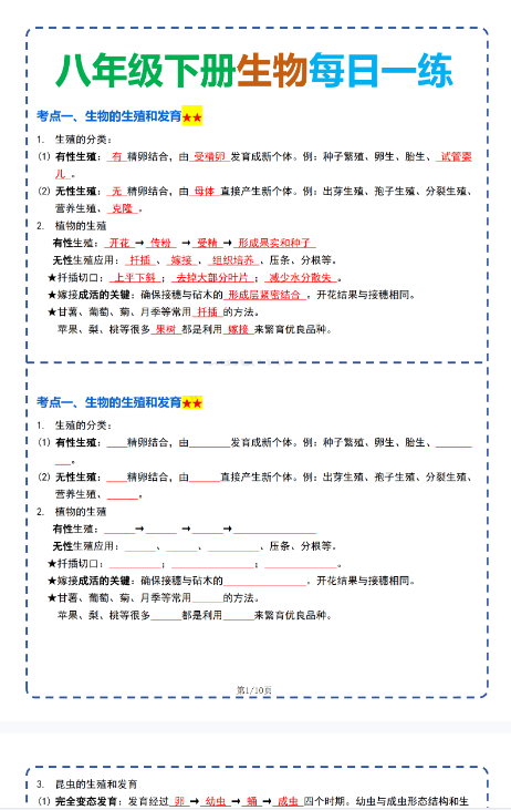 | 🚨【立即一键保存】初中八下生物精品小纸条(无水印高清版)— 考前冲刺抢分必救! | |