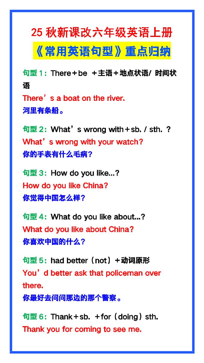 【2025秋新版】六年级英语上册《常用英语句型》重点归纳,一键速领提分利器! | |