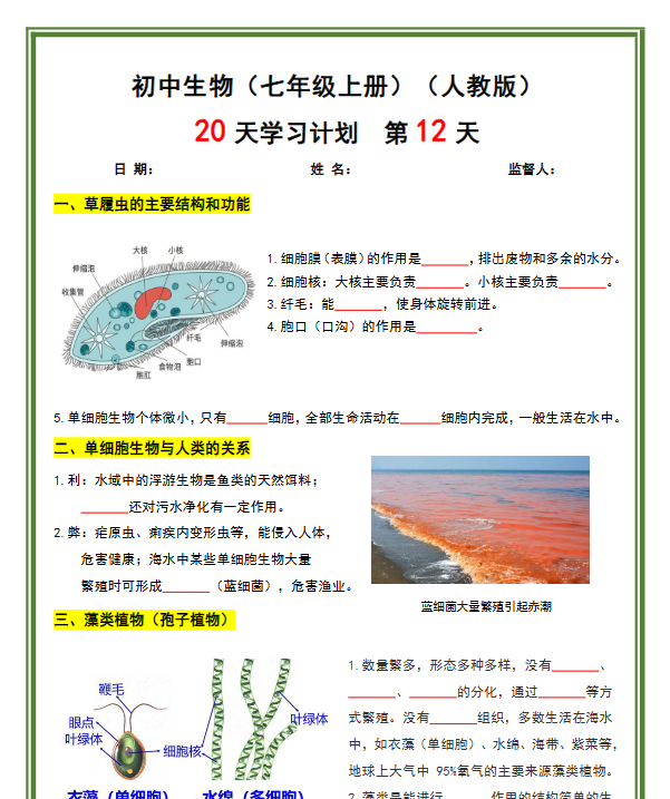 | 🔥一键保存20天高效生物学习计划!40页精编内容每日精准推进,科学规划助你快速掌握七年级上册生物核心知识点,限时领取,错过再无!立即点击实现逆袭提分! | |