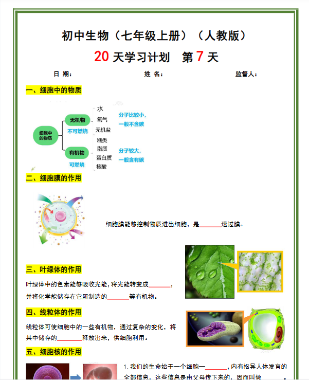 | 七上生物20天学习计划(40页完整版)— 每日打卡,稳步进阶 | |