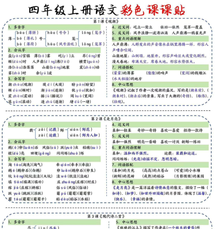 2025秋语文上册四年级课课贴6款高清无水印版本,一键保存极速获取!教材同步全覆盖,图文清晰无水印,学习效率翻倍提升,错过再无!立即点击一键下载,高效预习复习就这么简单!