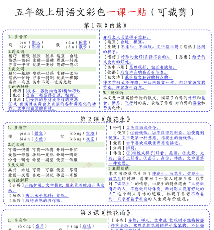2025秋语文上册五年级课课贴4款高清无水印版,一键保存极速下载!原图原质无杂质,备考预习高效又省心,限时领取学霸学习神器!