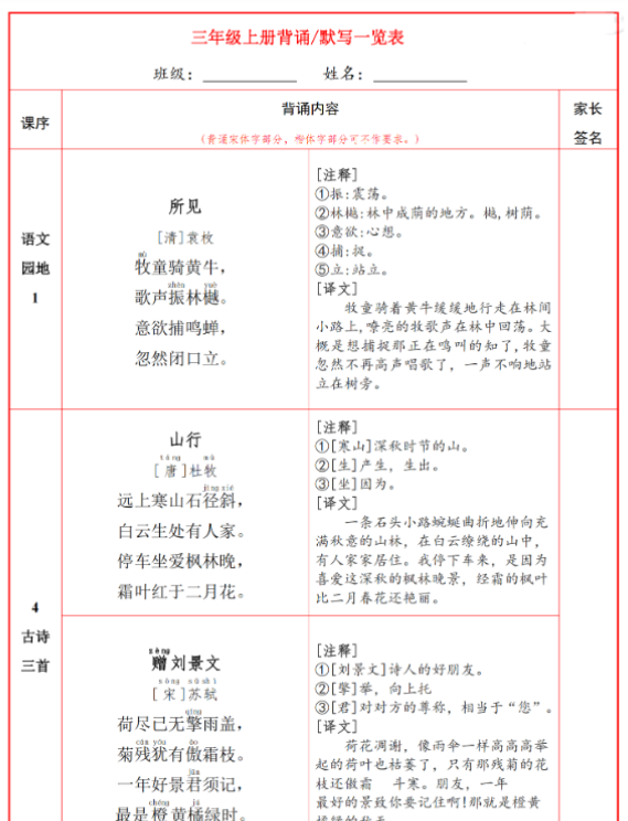 | 【2025秋】小学语文《背诵闯关表》1-6年级上册(完整版) | |