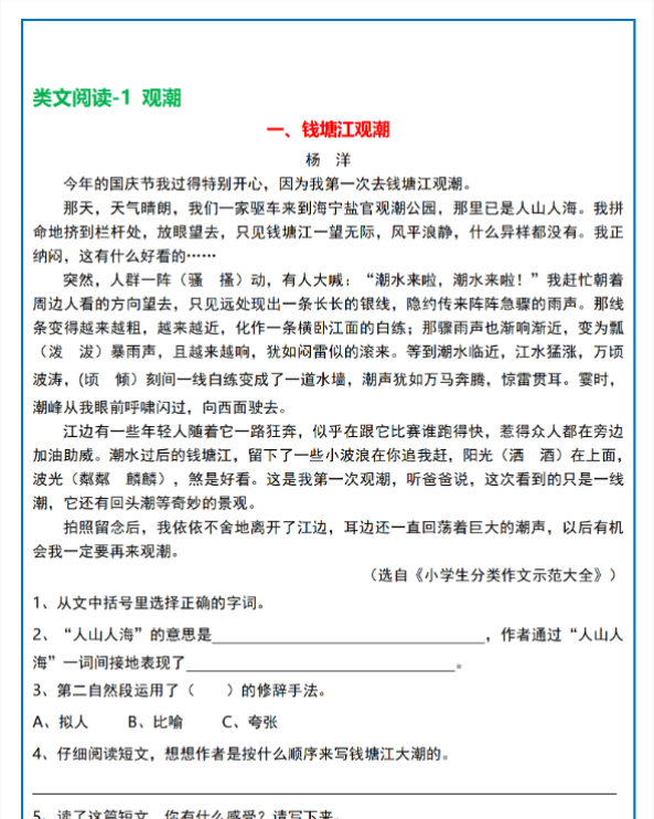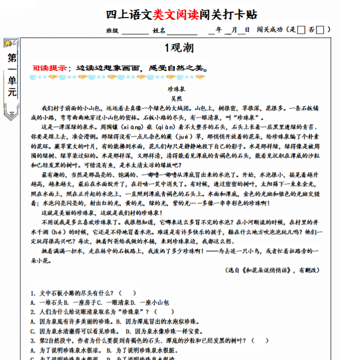 【立即一键下载】2025秋类文阅读小纸条:让孩子每天进步一小步,全年语文领先一大步!