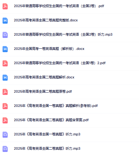 | 🔥最新《高考英语》真题高清完整无水印版本,一键保存极速获取!完整还原考场真题,精准解析高频考点,助你高效备考冲刺高分,速度收藏别错过! | |