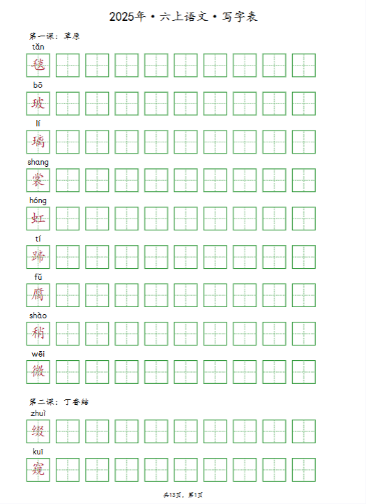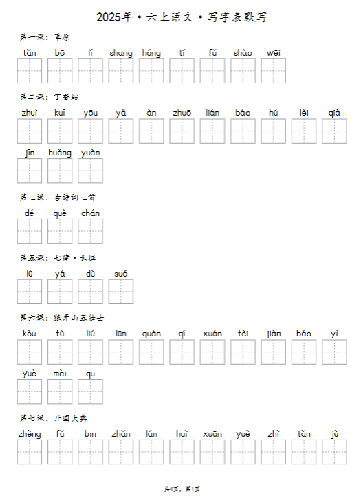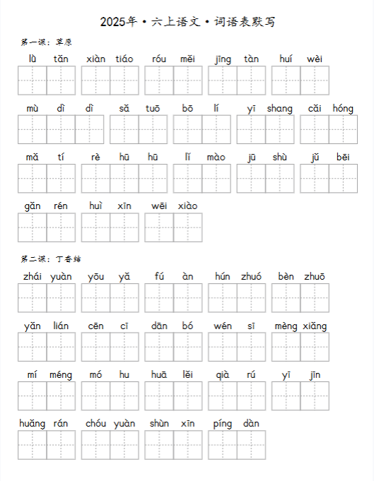 🔥一键快速保存!2025秋六上《识字表》《写字表》《词语表》同步抄写默写全收录!高清word可打印,告别手抄速练,家长教师必备神器,错过再无!立即点击获取高效学习工具!