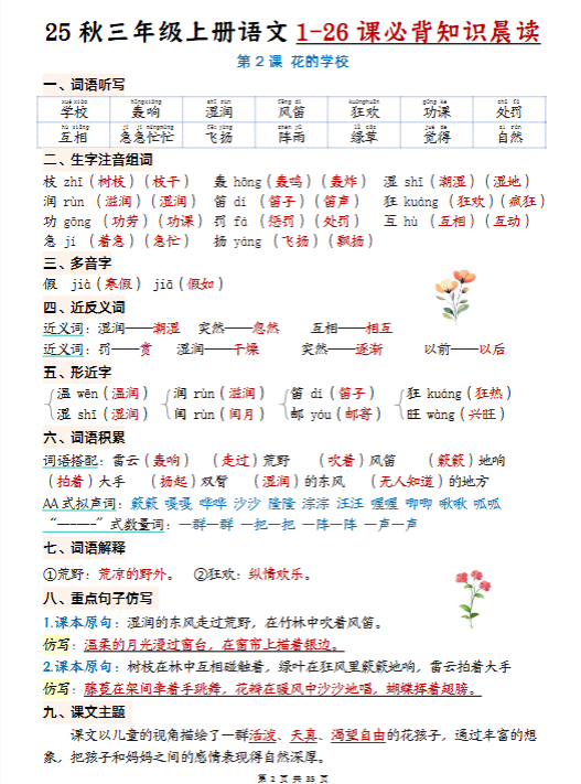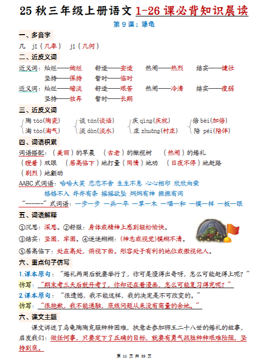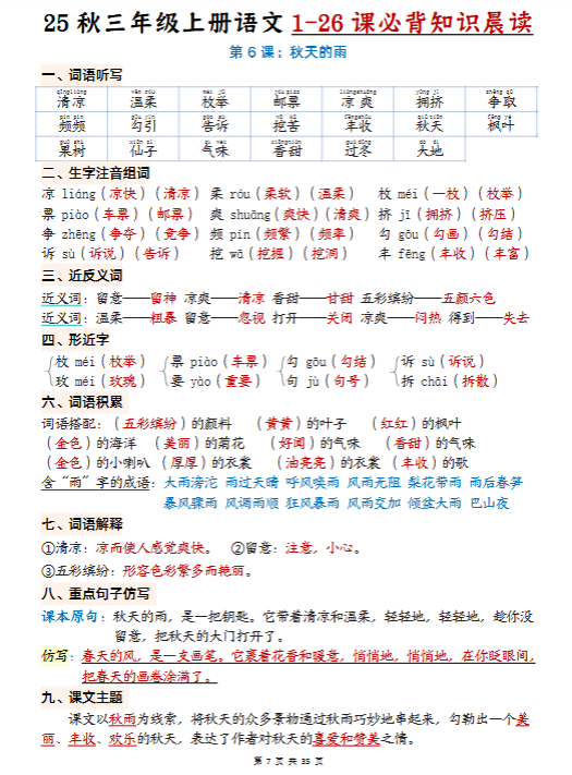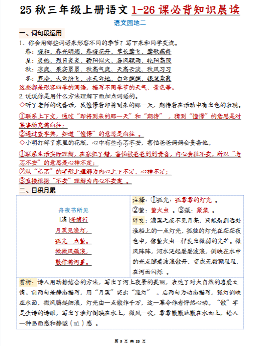 | 2025秋三年级上册语文1-26课必背知识晨读单(35页完整版) | |