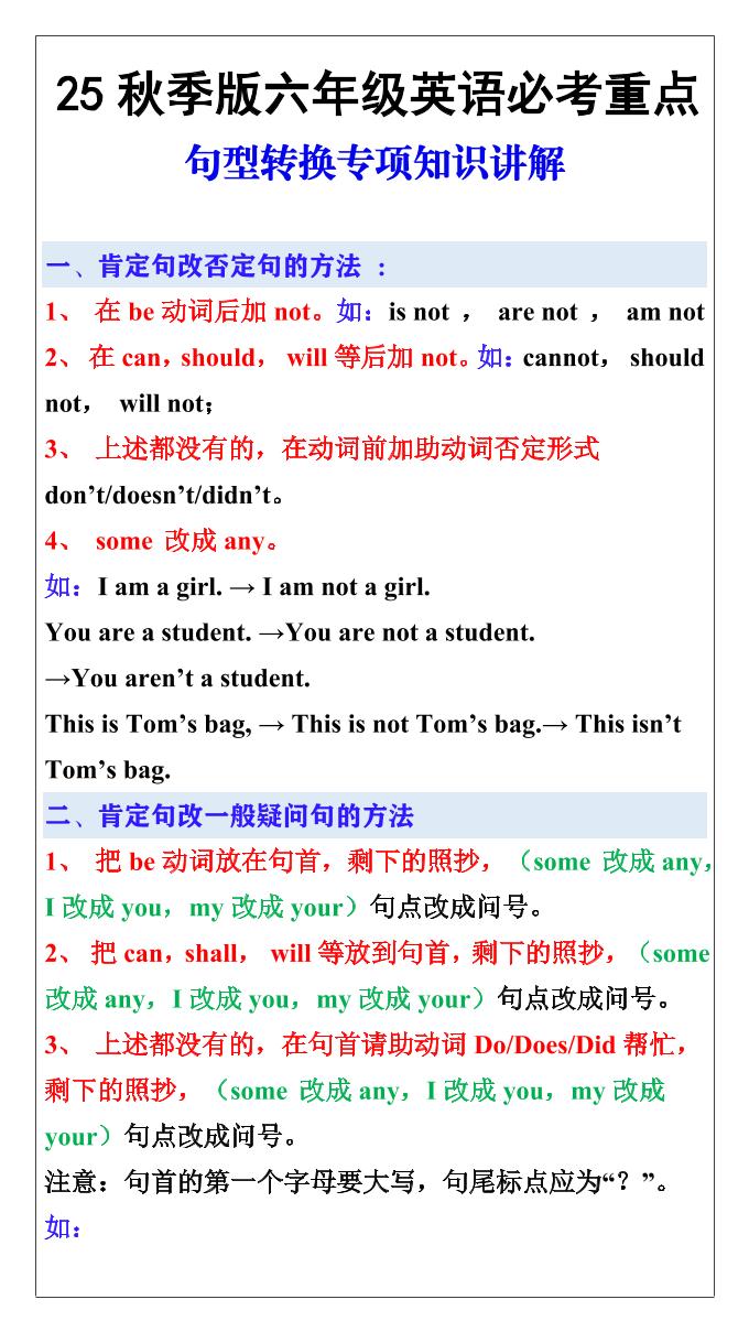 ⚠️【新版内部资源】六年级英语句型转换提分神器!快速下载,轻松拿下必考点,考试不丢分! |