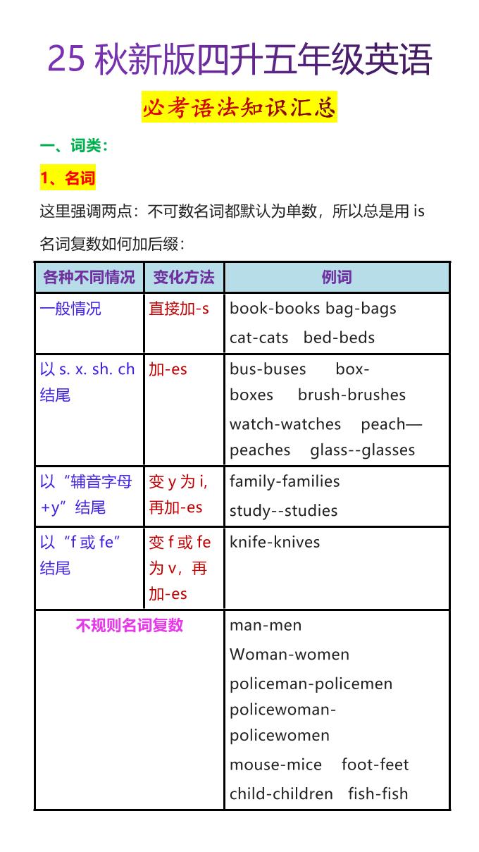 【2025秋新版】四升五年级英语必考语法知识汇总-五上英语 | |